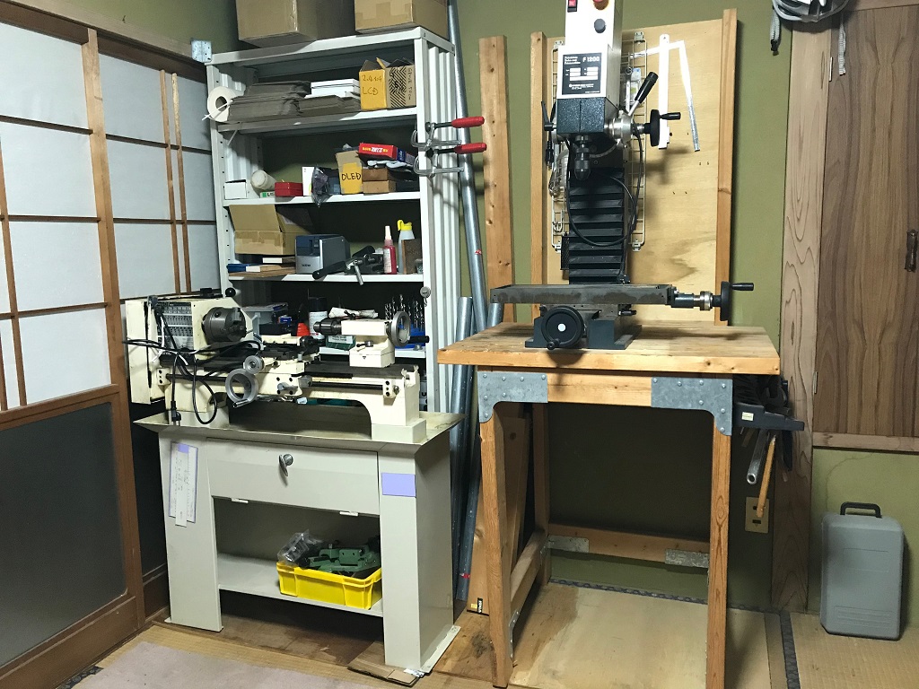 旋盤とフライス盤の重量は、それぞれ 100kgと70kgぐらい。 これが木造住宅の2階に設置しているので、家の外に出すのも たいへん。 どうやって運び込んだのか不思議なくらいだ。