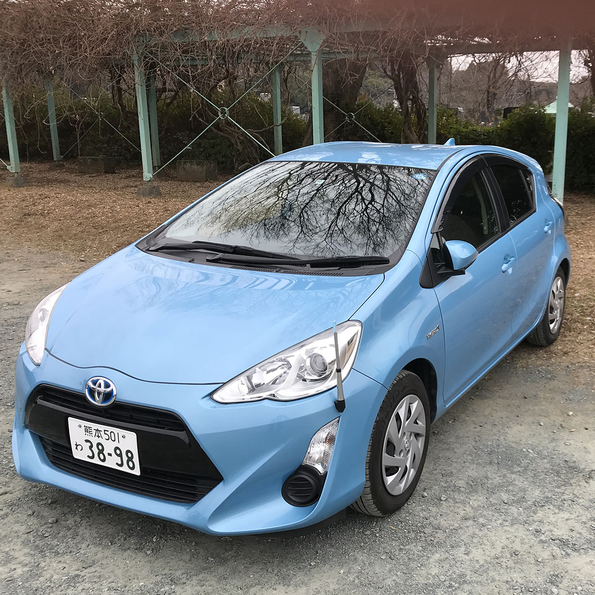 車種は トヨタ アクアのハイブリッド。 最初、ハイブリッドとは気づかず、 キーを回してもエンジン音がしなくて焦った。