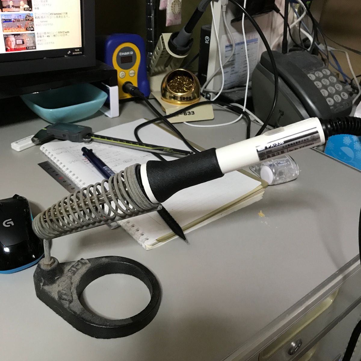 ハンダゴテを購入した理由は2つ。 2本めのハンダゴテが無いとチップ抵抗等を外すのが面倒で あることと、普段遣いしている FX-888の小手先 が斜め切りタイプで ABSへのナット埋め込み時にななめになりがちということ。 チップ抵抗は、ハンダゴテ1本でも、ひつこく加熱すれば外せるが、 面倒だし、時間がかかる。2本あれば一瞬だ。