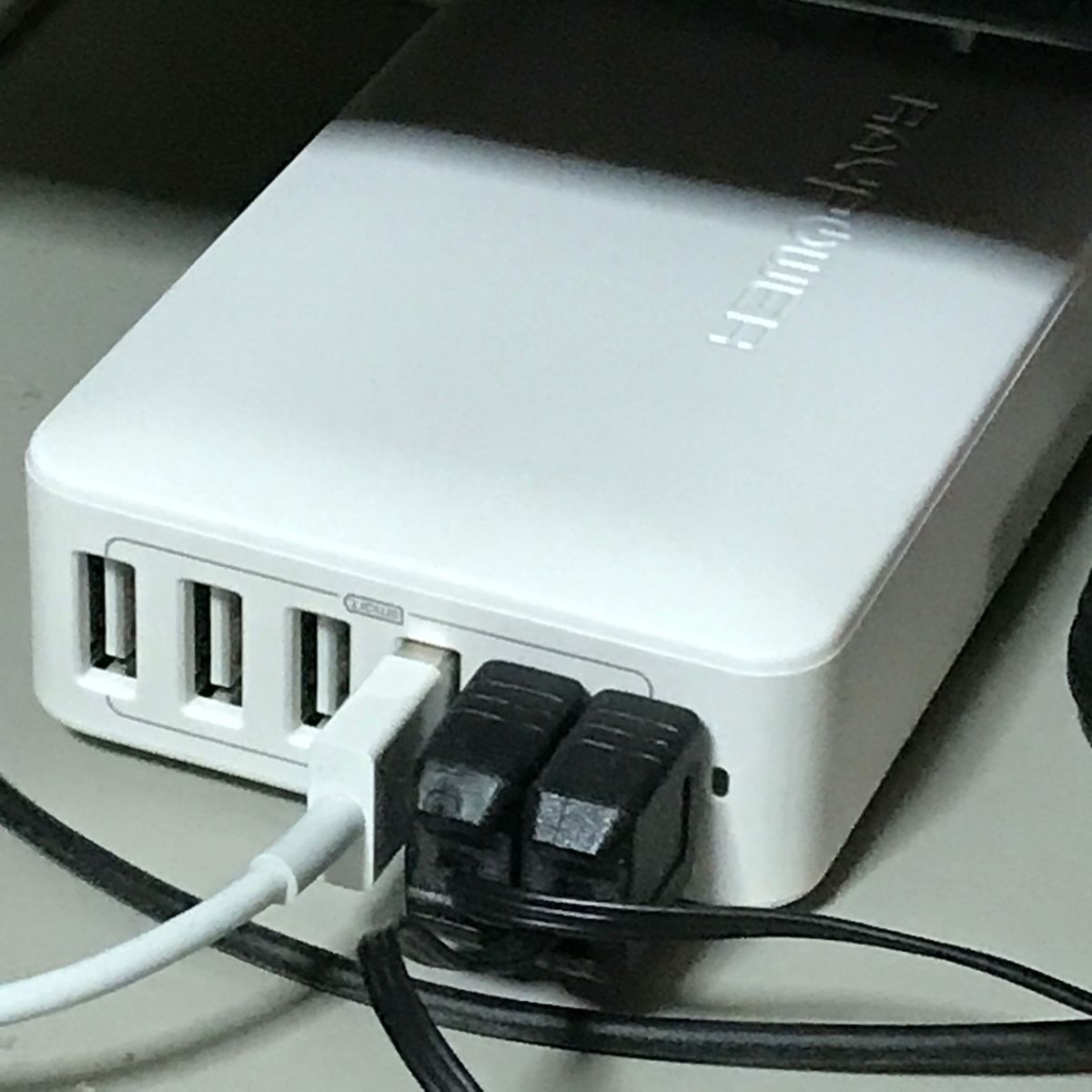 USB電源は、電源を取るためだけに USBハブに接続されているケーブルが多いので、 適当に調べて RAVPower USB充電器(60W 6ポート)を購入。 これでUSBポートが少し空いた。