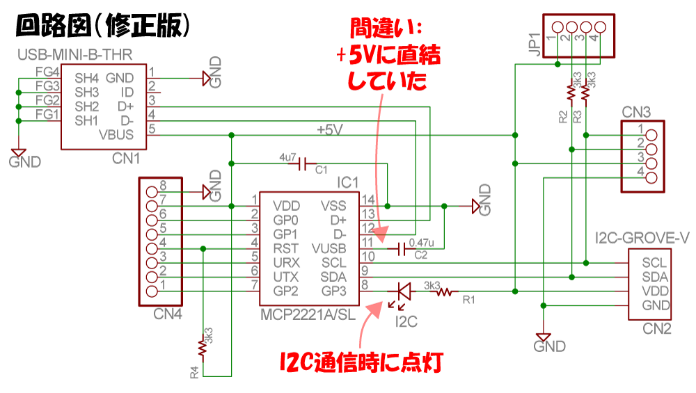 MCP2221Aの11番ピンVUSBを USBコネクタのVbusに