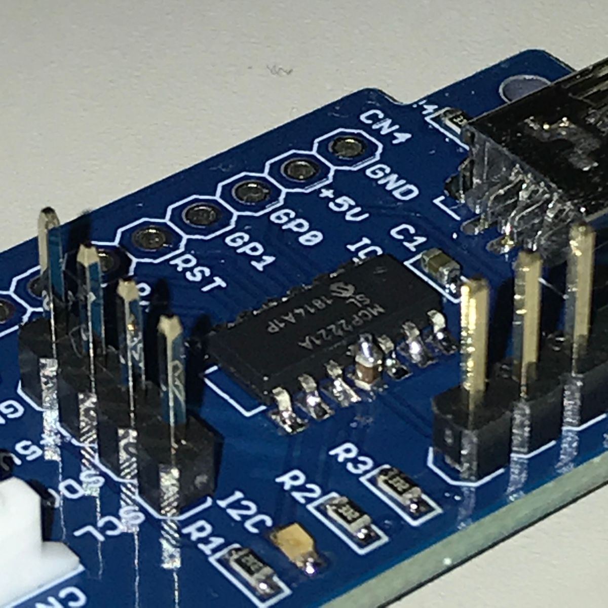 2枚めの基板にMCP2221AとUSBコネクタのみ