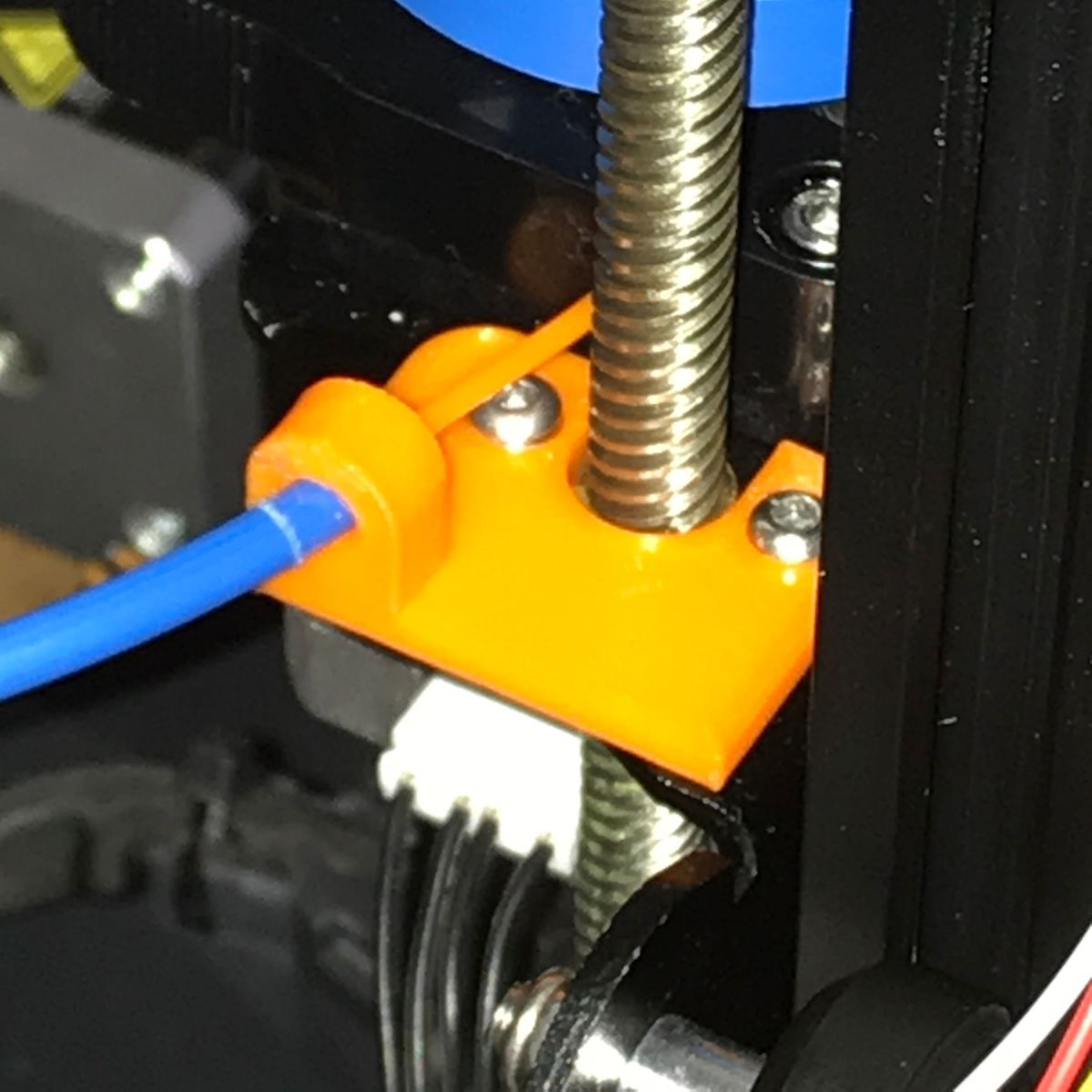 フィラメント・ケース-3Dプリンタ間は PTFEチューブにいれてフィラメントを送っている。 このチューブには湿気の侵入を防ぐことと 3Dプリンタがフィラメントを引いても ケースが動かないという利点がある。 X-Smartのヘッドはチューブを受け止める 形状になっているが、ENDER3V2はそうなっていないので、 自作の部品を追加し、チューブを受け止めれるようにした。