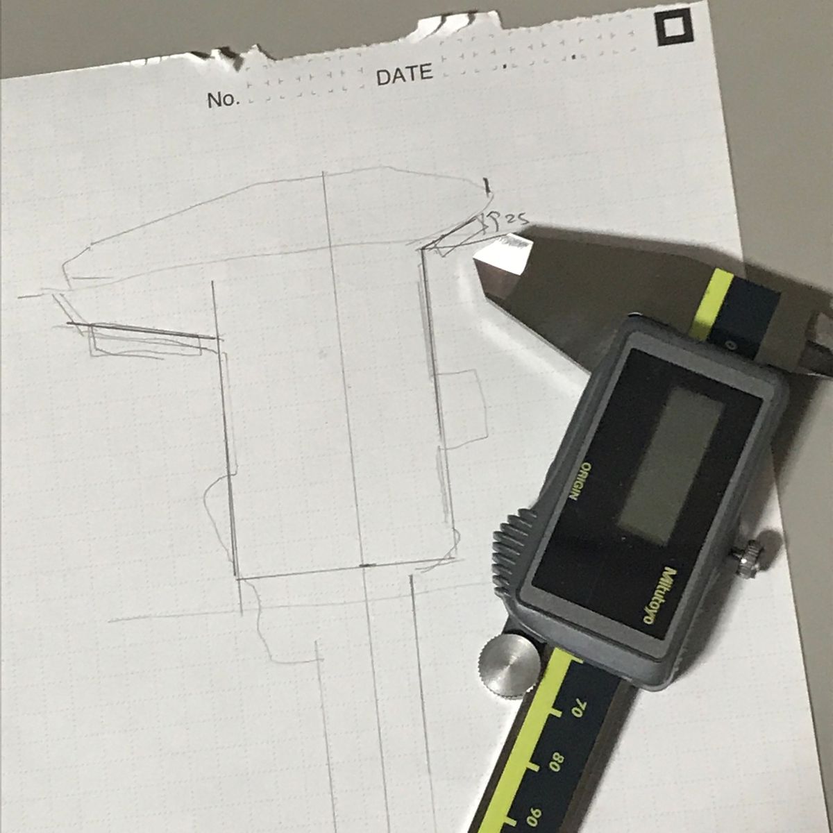 紙にノギスの外形を写し取り、採寸し