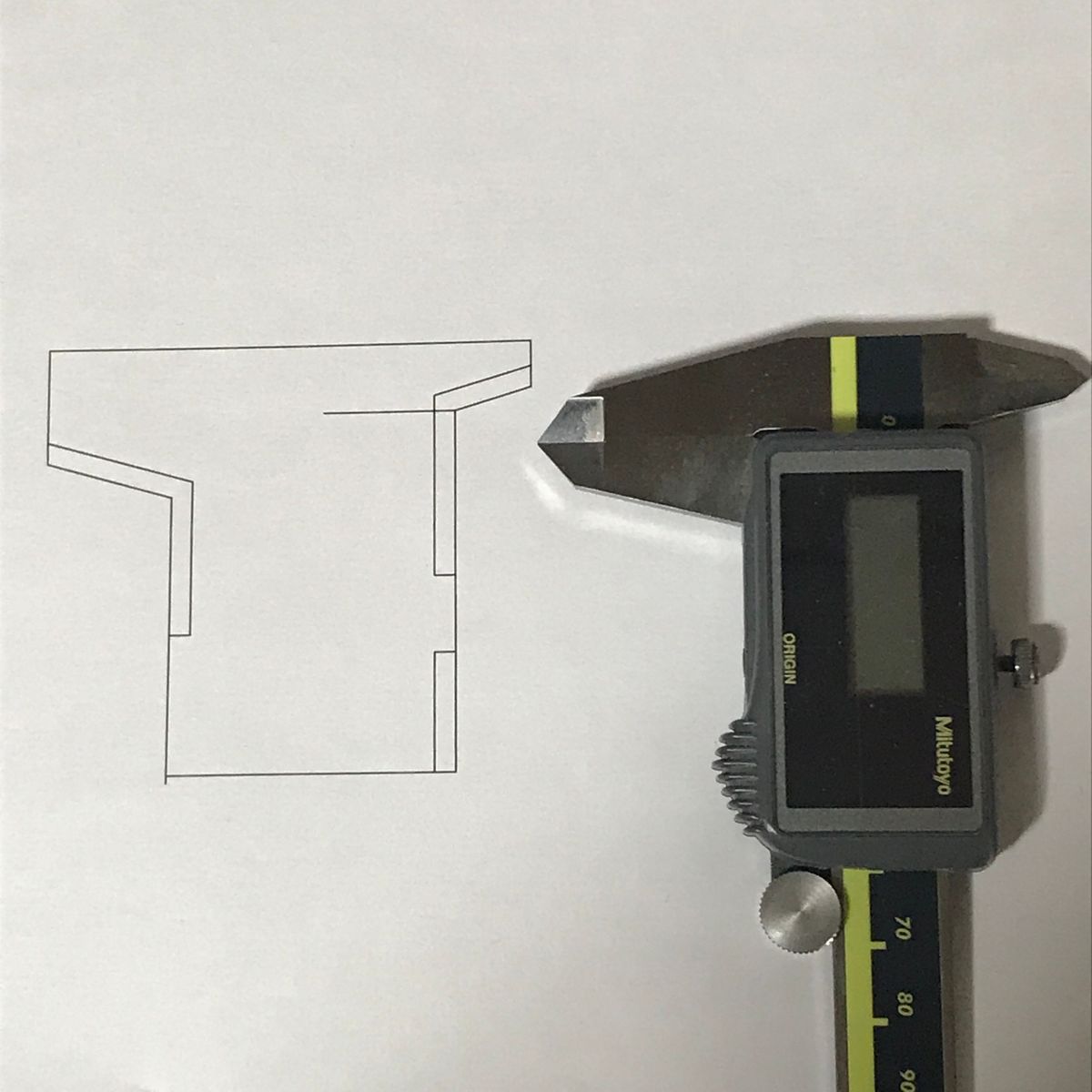 | ノギスの形状を紙に写し取る。 |