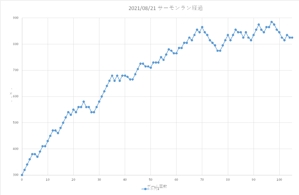 前回に引き続き、経過をグラフ化した。 今回は300からのスタートとなっている。 開始までに400にするつもりだったのだが、 前のステージが厳しく頑張ったが 300にするのがやっとだった。