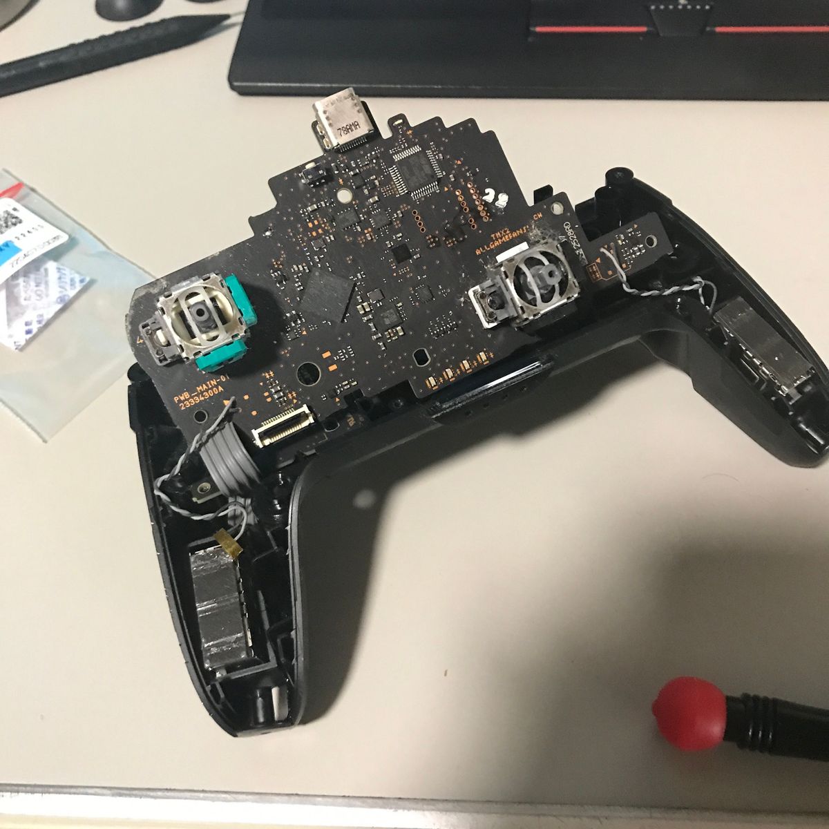 この後、分解修理した方を主に使っていたのだが 数ヶ月前に再び調子が悪くなった。 右スティックが触らないのに動いているような入力になる。 スプラトゥーンだと操作しないのに視界が回る感じ。
