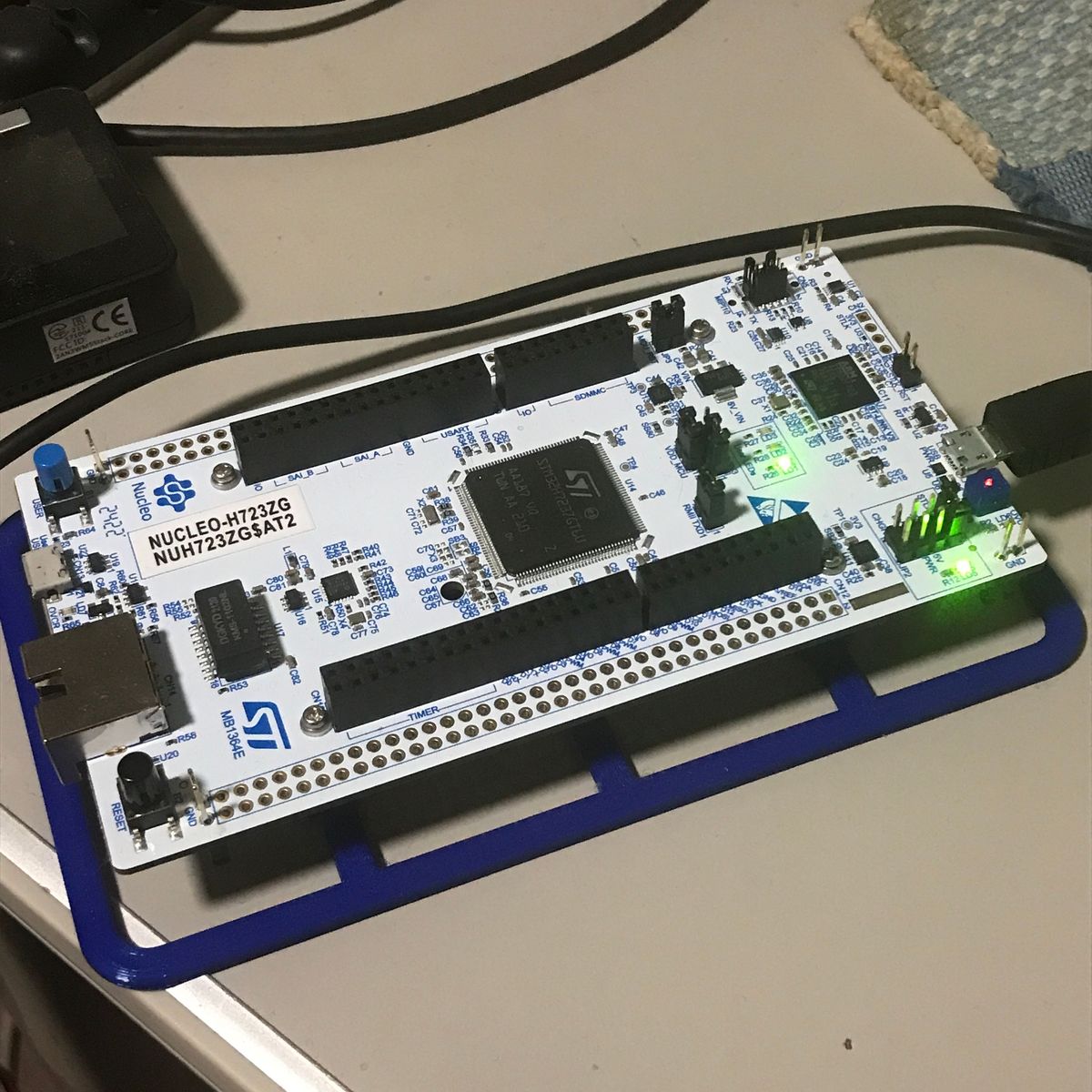 STM32HシリーズはSTM32の高性能シリーズで デュアルコアの物まである。 STM32H723(以下H723と記す)は Cortex-M7のシングルコアで CPUクロックは最大550MHz。 以前よく使っていたSTM32F405は最大168MHzなので 3倍以上ということになる。 性能が必要な処理をマイコンでやらないので 高性能マイコンに興味が無かったのだが USBのhi-speed通信(480Mbps)に手を出し欲しくなった。