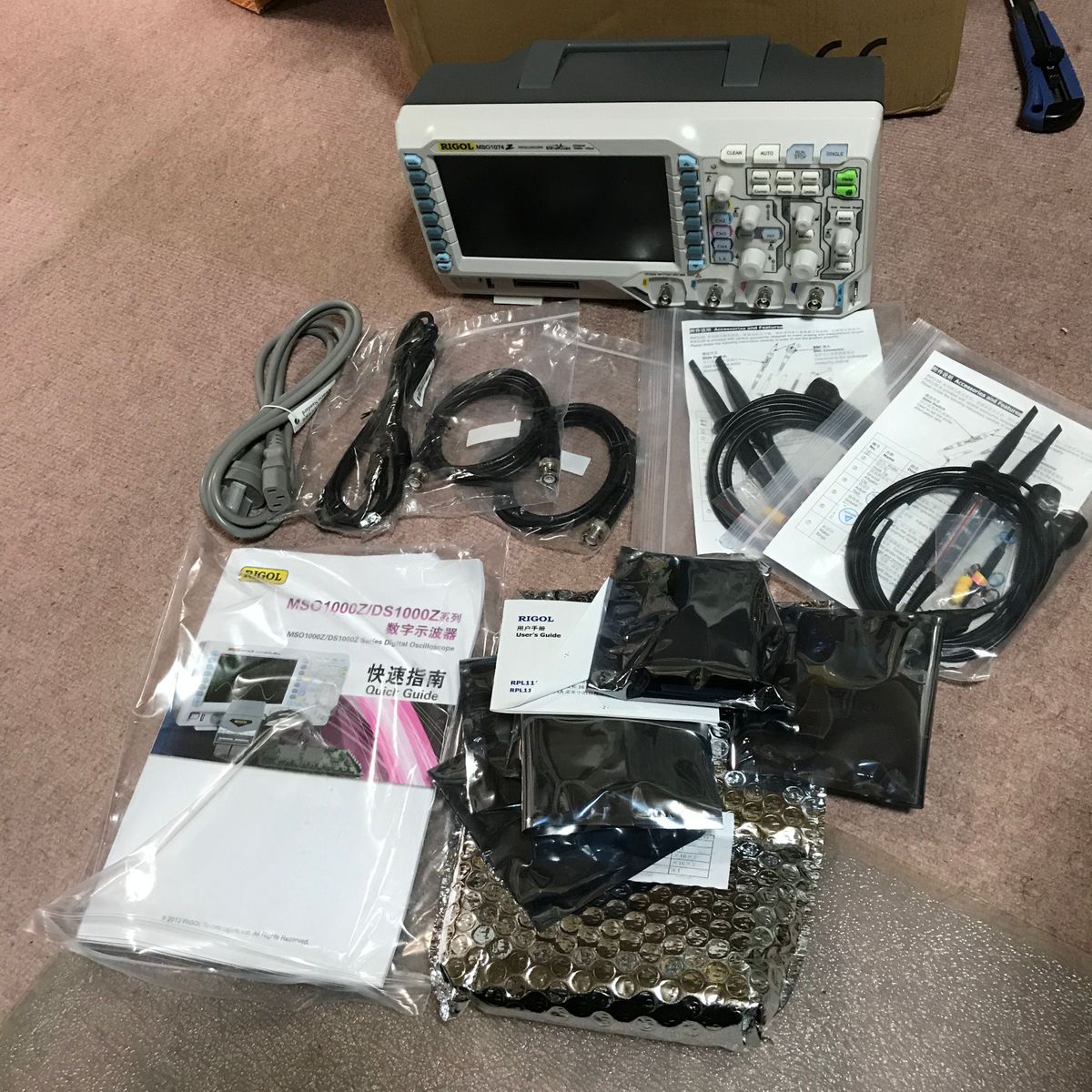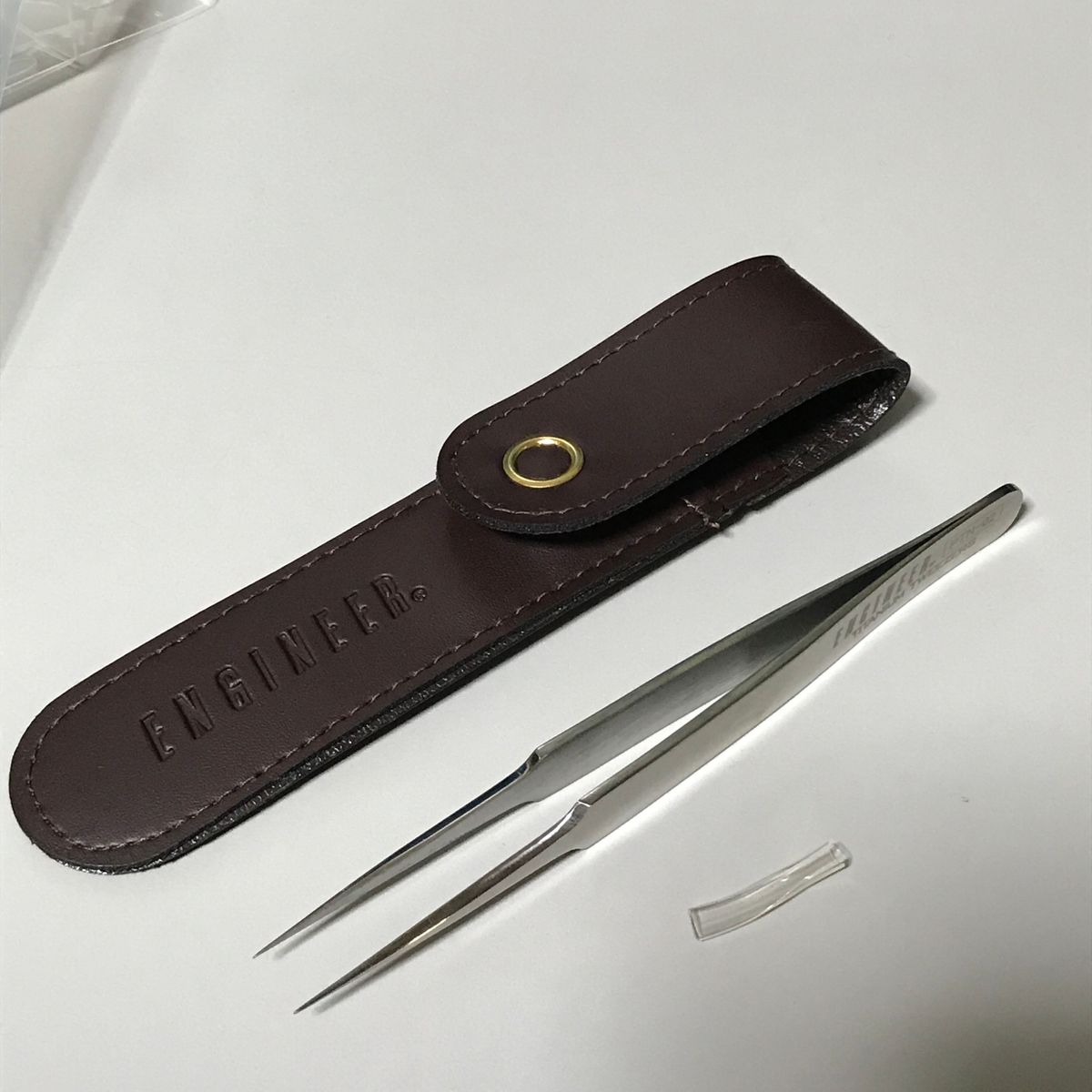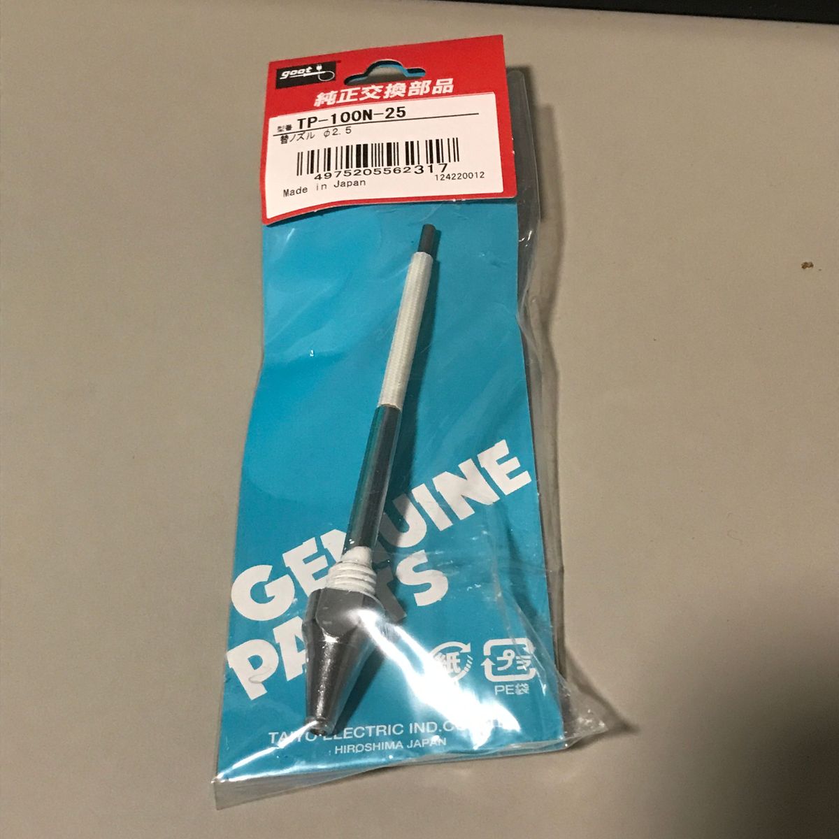 届いたものは、コンパクトな本体と9Vの角型電池と ケースと反射テープ。コンパクトにまとまっていて好印象。