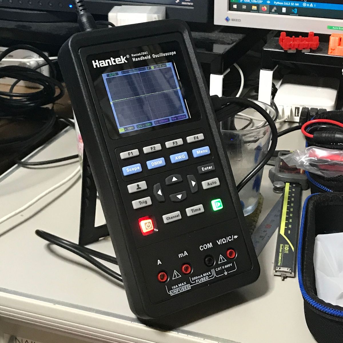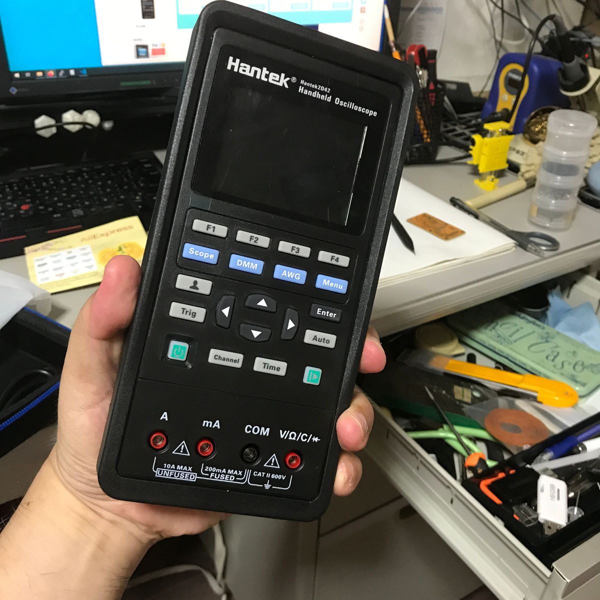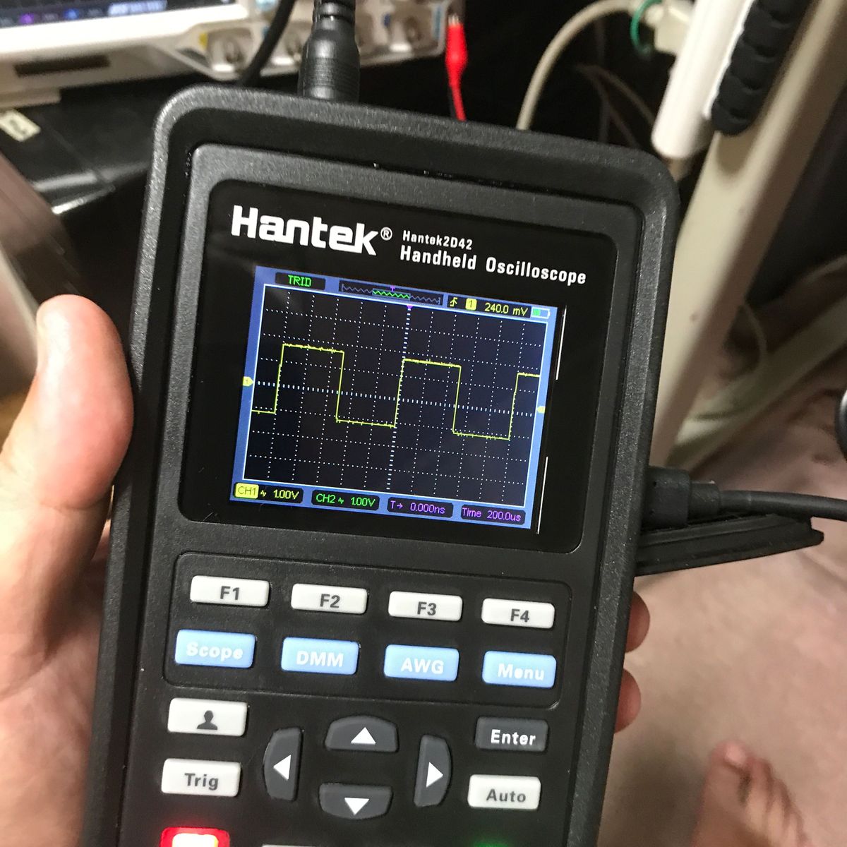 まだ FANコントローラをいじっている。 ESP32仕様でLCDもついているタイプの奴。 これはFANからのパルス信号で FANの回転速度がわかるのだが、 1回転が何パルスなのかがわからない。 フォトトランジスタでファンの影を検出し、 回転時の信号の周波数をオシロスコープで計測してやれば良いと 思うのだがブレッドボードで回路を組むのがメンドクサイ。 安い回転数計があれば、この機会に買っても良い。 調べると 1,554円のものがあるので買ってみた。