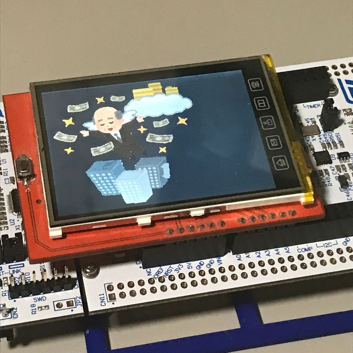 プログラムを書き込むと本当に表示された。 びっくりだ。 思ってたのより凝ったデモなのに関心する。