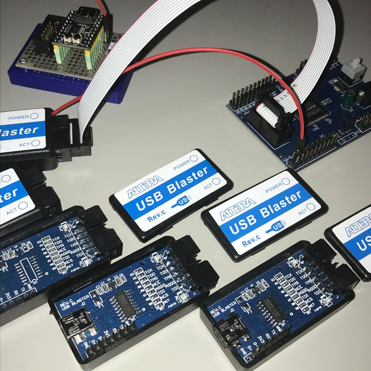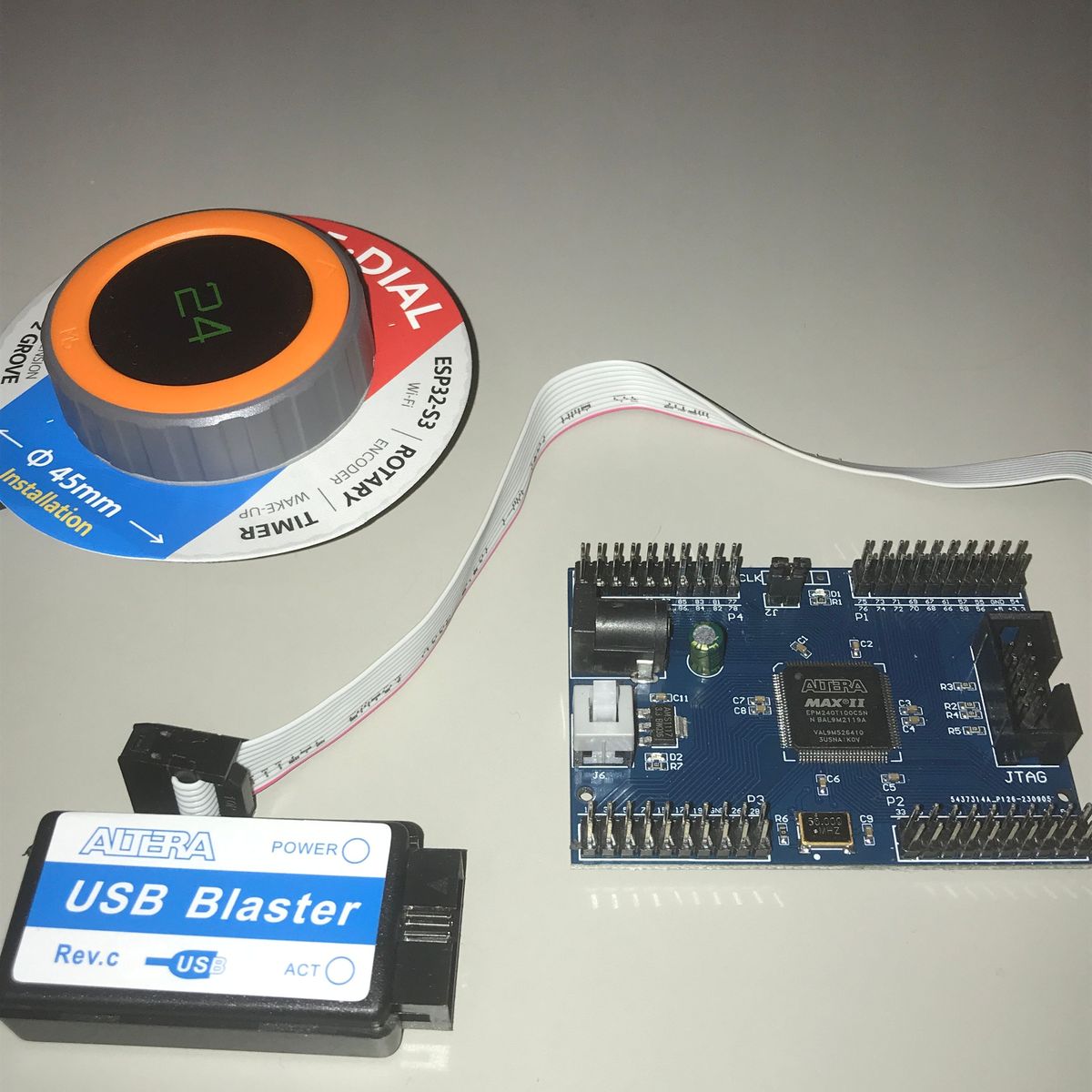 MAX2 EPM240ボードの購入理由は、 長く使っている部品で、だいぶ前に製造中止になり、 入手が難しく価格も高くなったものがあり、 CPLDを使えば代替品を作れるのではと思ったこと。 CPLDに入る回路の規模感がわからないので、 とりあえず開発ボードで動かしてみようと考え、 CPLDの開発ボードを探すが、安いのはこれしか見つからなかった。 プログラム書込み用にUSB Blaster(互換)ケーブルも購入。