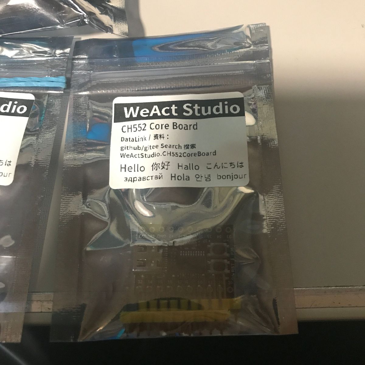 | 買ったもの。CH552コアボード×4、互換USB Blaster×4 | CH552コアボードの袋。 技術情報は gitで WeActStudio .CH552CoreBoardを検索しろと書いてある。新しい情報提供の方法だ。 | CH552コアボード 199円 |