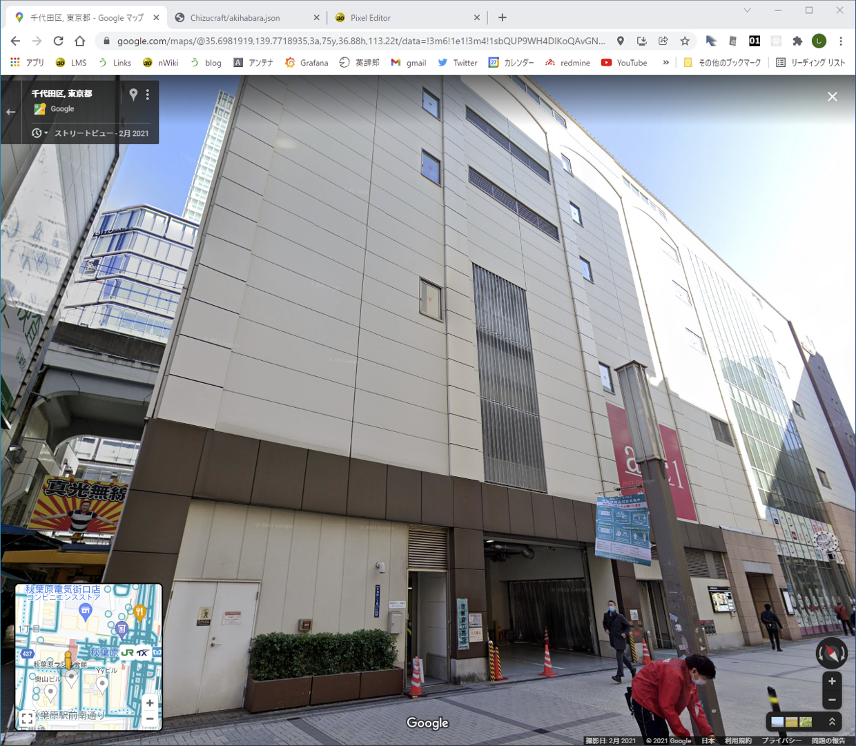 | モノレールの下の道路建設にいそしむ | 地図、道路がところどころ復旧している |