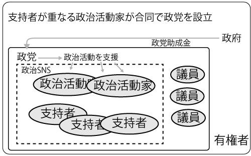 政治向けSNSを作り、資金を政治活動家に供給できる仕組みを作れば