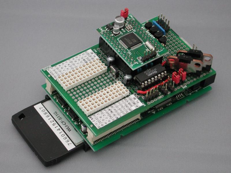 L-Card+の拡張基板とH8/3664モジュールが見えます。