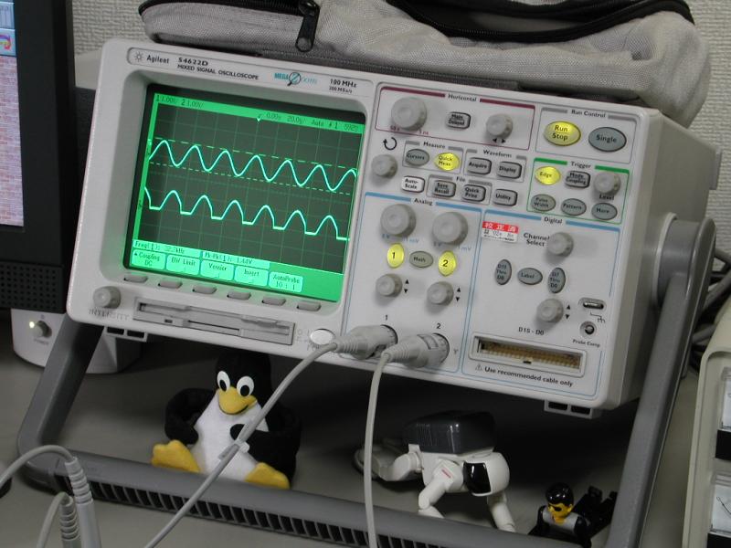 事務所に アジレントの 54622D (100MHz)届く。 オリックス・レンテックからのレンタル品。 1ヵ月で 58,900円+運送料+消費税。 仕事で使うのでお金も使える。 驚いたのは対応の速さ。 レンタルを申し込んだのは、 月曜日到着した基板をチェックした後。 夕方、ホームページで申し込むと、 すぐに反応があり、今朝 9時すぎには届いてしまった。 凄いなぁ。 ちなみに 先日借りていたのは 54641D (350MHz)で評価用に5日間ほど。 さぁ、この1ヵ月でバリバリ開発を進めるぞぉ。