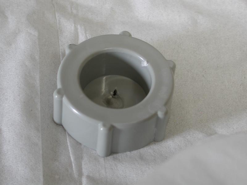 プラスティック(塩ビ?)製のキャップに穴があいてしまったようだ。