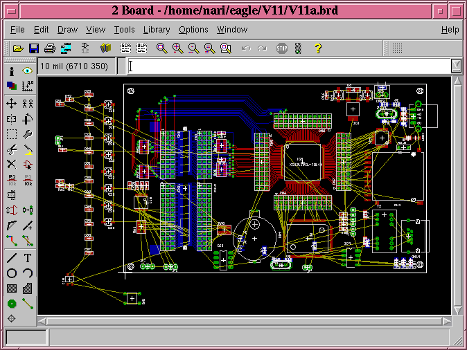今日もEAGLEで配線。 いちばんやばそうなところを配線してみる。 思ったより余裕があった。 不恰好なのは、徐々に修正する予定。