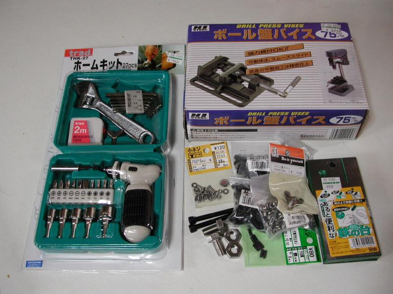 ハンズマンに行き、いろいろ買い込む。 必要なのは3mmの皿ネジだけだったのだけど、 ボール盤バイスも欲しいなぁ、ということで買ってしまうと 勢いがついていろいろ買ってしまう といっても全部で 7,000円くらい。 重量単価は安い.. ボール盤バイスは 6,000円ぐらいのボール盤を買えば ついてくるのだけど、それを買っても置き場所がないので仕方がない。 単体で2,980円のものを購入。 あとネジはいろんなことを考えていろんなものを買ってしまう。 ネジとか買っていると心がなごむぜ。 写真の「あると便利な鉄の板」は卓上アンビル、鉄床。 鉄の板の裏側にクッションをつけただけたもので、 こんなものが930円というのは高い気がしないでもないが、 作るのも面倒だし工作派の文鎮には良さそうだということで購入。 アルミ板に工作を行い、Bear-1の胴体にN-Cardを搭載。 Bear-1もほぼ2年ほったらかし。