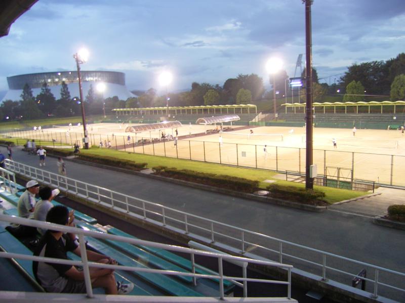 夜、テニスに行く。