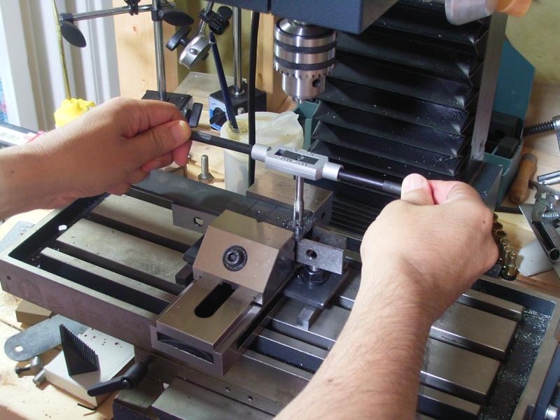 ボール盤でタップをたてる方法だ。