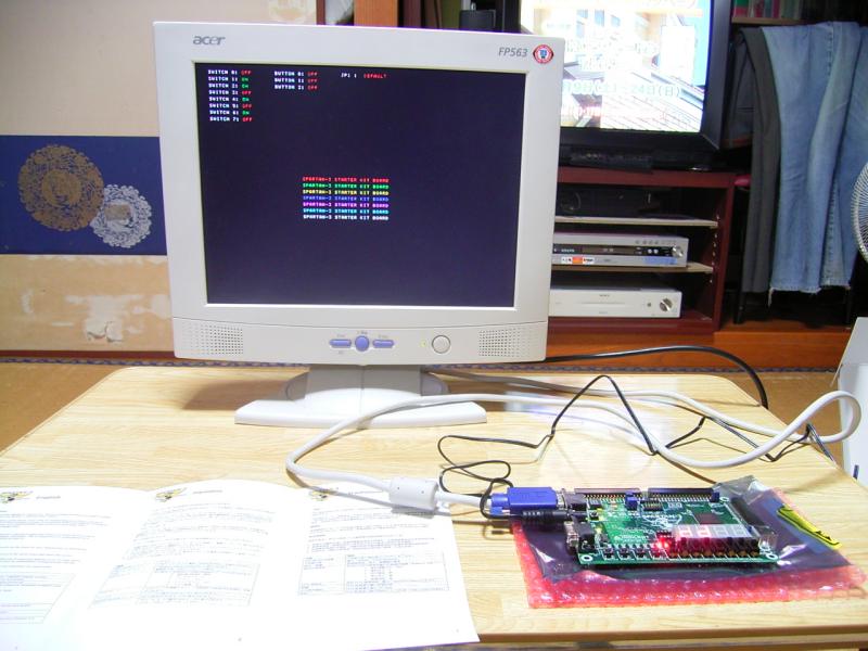 20万ゲートのFPGAに1MbyteのRAM,LED,SW,VGAポートに