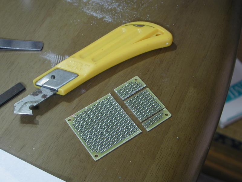 部品 使用した部品です。 白色チップLED 3個で200円 と 白色LED付属の定電流ダイオードを使用しました。 べつに定電流ダイオードでなくて、抵抗でも良いみたいです。 基板の切断 まず、基板を適当なサイズに切断します。 秋月電子のスルーホールのユニバーサル基板を使用しました。