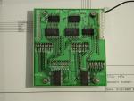 おととい届いた基板を組み立てる。 チップ抵抗を32個も並べるのは格好良いのだが、 面倒だし不要だったかもと反省。 ICはチップ抵抗よりも簡単にハンダ付けできる。 組み立てて動かすが光らない。 (T_T) 調べると3個所も設計ミスが... ジャンパーをとばしてちゃんと光るようになった。
