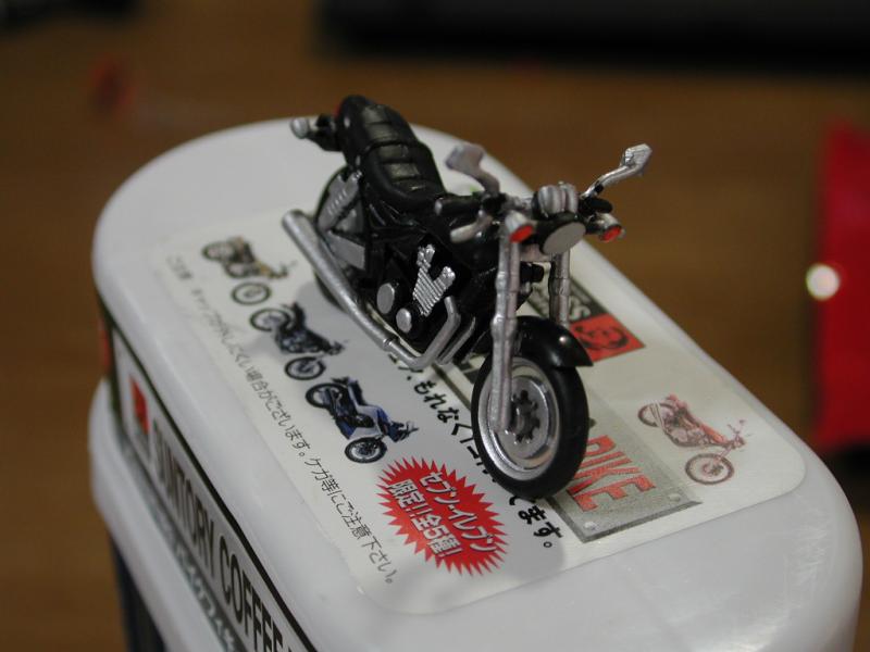 コンビニにお菓子を買いに行ったところ、 缶コーヒーにバイクの模型がついているというので、 買ってみる。入っていたのはKawasaki ZEPHYR。 できはまぁまぁ。 ひさしぶり(?)にBasic Mouseをいじる。 自分なりに動くものにしようと、 プログラムをいちから作り始める。 今後、徐々に機能を追加する予定。