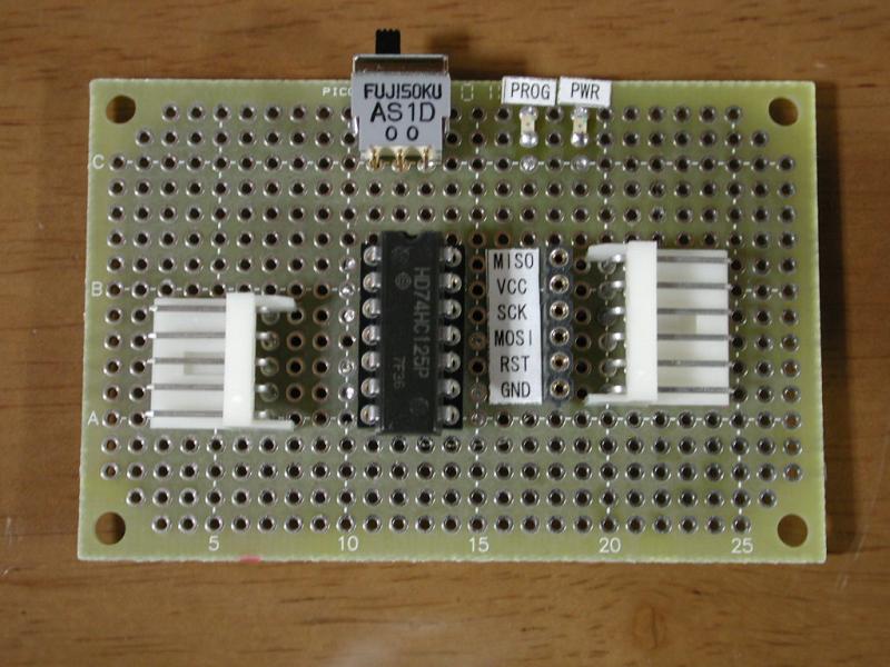 AVRプログラマ(表) AVRプログラマ(裏) ATtiny26 ブレッドボード上で動作