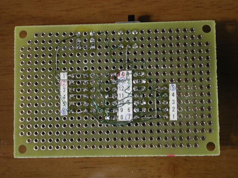 ATtiny26で工作。 こんなボードでもCでいろいろプログラムできるのが面白い。 74HCで直接ドライブしているのであまり明るくはできない。