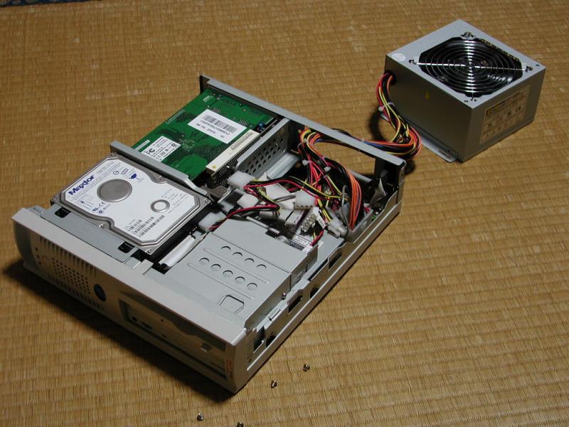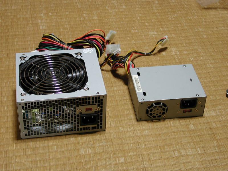 旧電源は90Wしかなかったのよね。新電源は350W 新電源(左)と旧電源(右) 外付け電源? 取り付けました