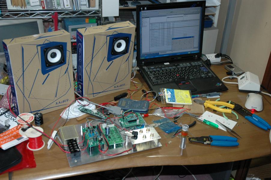 デジタルアンプのバラックがどうにも邪魔になってきたので、 とりあえずバラしてかたづける。 早くケースを作らなければ....
