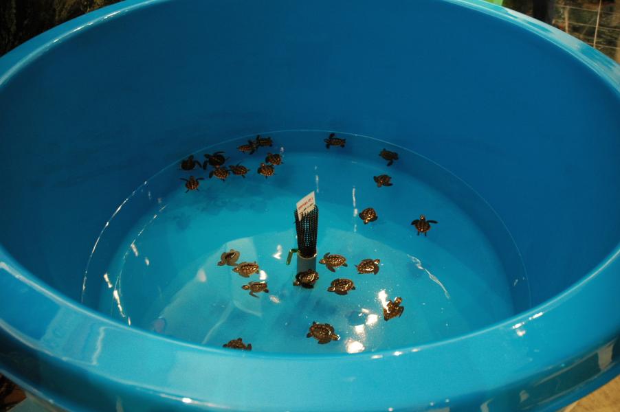 さすが海ガメ、岸がなくても大丈夫なのね。