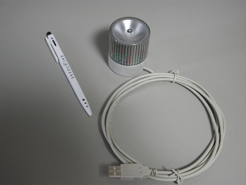 DelCom社の USB Visual Signal Indicator 届く。 USBでコントロールできる3色のLEDとブザーとタクトスイッチの ついている機器。 業務に使えるかもと調べていたら欲しくなり 1つ買ってみた。 値段は 本体 $86 + 送料 $11 + Handling Fee $6 で合計 $103。 ドライバーや簡単な技術資料もついてくるが まだよく見ていない。光らせてもいない。