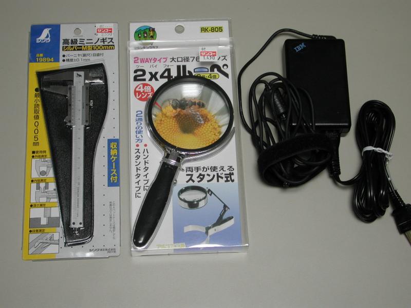 ノギス、ルーペ、ACアダプタ