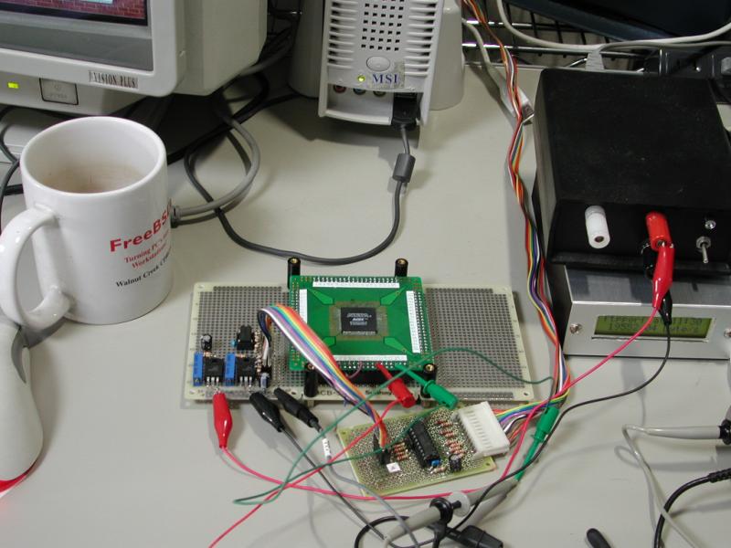 今日も寒い。いちだんと寒い。 EP1K10の動作が確認できた。 半田づけやその確認、Max+plusII baselineのインストールや テスト用回路の入力、 FLEX10Kでの動作確認などに 時間がかかったが、 EP1K10本体で試すとあっさりと、 JTAG経由でもPassive Serial経由でもダウンロードに成功、 回路も動作した。 この基板って、 9月22日に作り始めてたんだ...