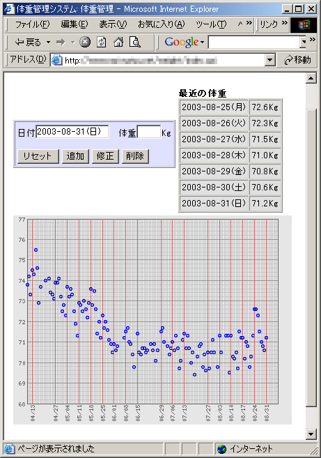 グラフとか見れて楽しいだろうと体重DBアクセスCGIを作成する。