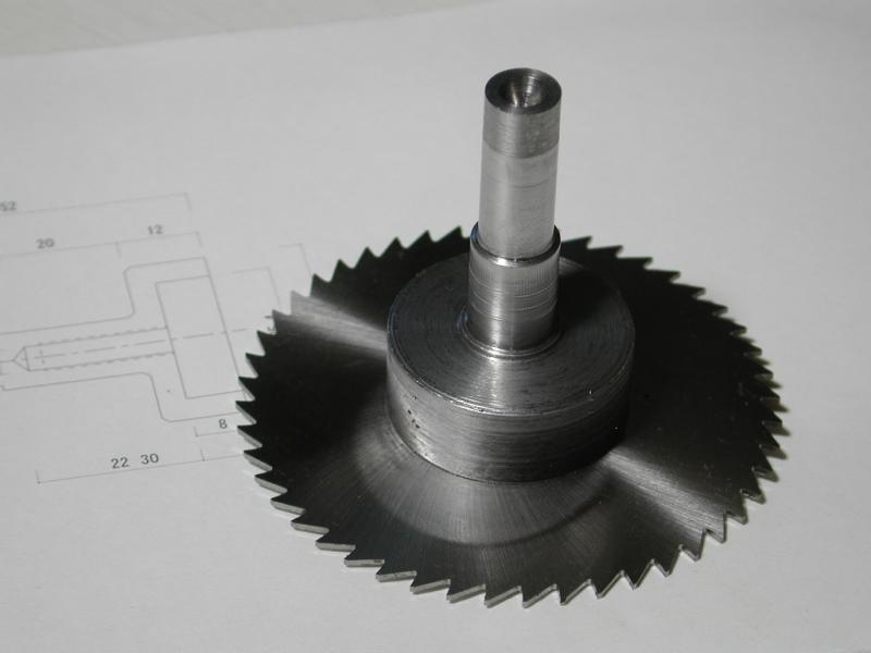 右は使いまわす部品 今日の製作物 メタルソーを装着 メタルソーアーバ まだ若干ぶれる フライスに装着