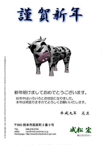 1997年の年賀状です。この年は画像よりも『文字入れ』の処理の方に 重点が置かれました。