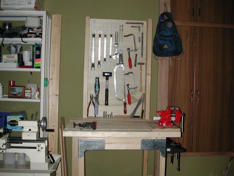 ダイソーでネットとその付属品を買い込み、 作業台に取り付けようとするが適当な金具がないので、 ハンズマンで購入。 ハンズマンから見る山並がきれいだ。 ネットをとりつけ、工具をぶらさげる。 部屋の一角に工作コーナーができあがった。 こういうのが夢だったような気がする。 工具をぶらさげる面はもっと広くてもよかった。 そのうち何か作って、 残っている壁面にも工具をぶらさげれるようにしよう。