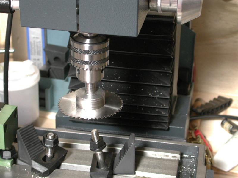右は使いまわす部品 今日の製作物 メタルソーを装着 メタルソーアーバ まだ若干ぶれる フライスに装着