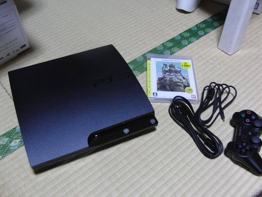 PS3クラスのゲーム機は前から欲しかったのだけど、 特にやりたいゲームも無いので 放っておいていた。 今度、約3万円に値下がりするので、 再び興味がわいたところに PlayStation3はこのタイミングで買うべき という記事を読み購入してしまった。 安くて面白そうなゲームがいろいろありそうだし、 BlueRayプレーヤにもなるしDVDもきれいにして再生してくれるらしい。 12月には FinalFantasy13も出るらしいから文句はない。 ネットワークインターフェースだけでなく 無線LANまでついているのにはビックリだ。 一緒に買ったゲームは MOBILE SUIT GUNDAM Target in Sight. なかなか難しい。 ネットで攻略情報を調べて頑張ろう。