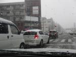 積雪数cm程度だが、道路は渋滞していた。