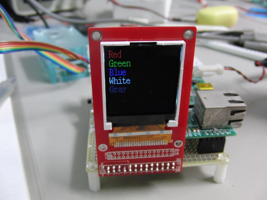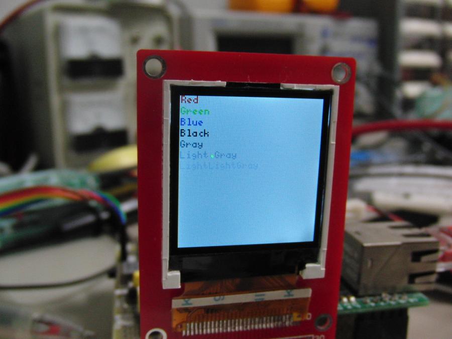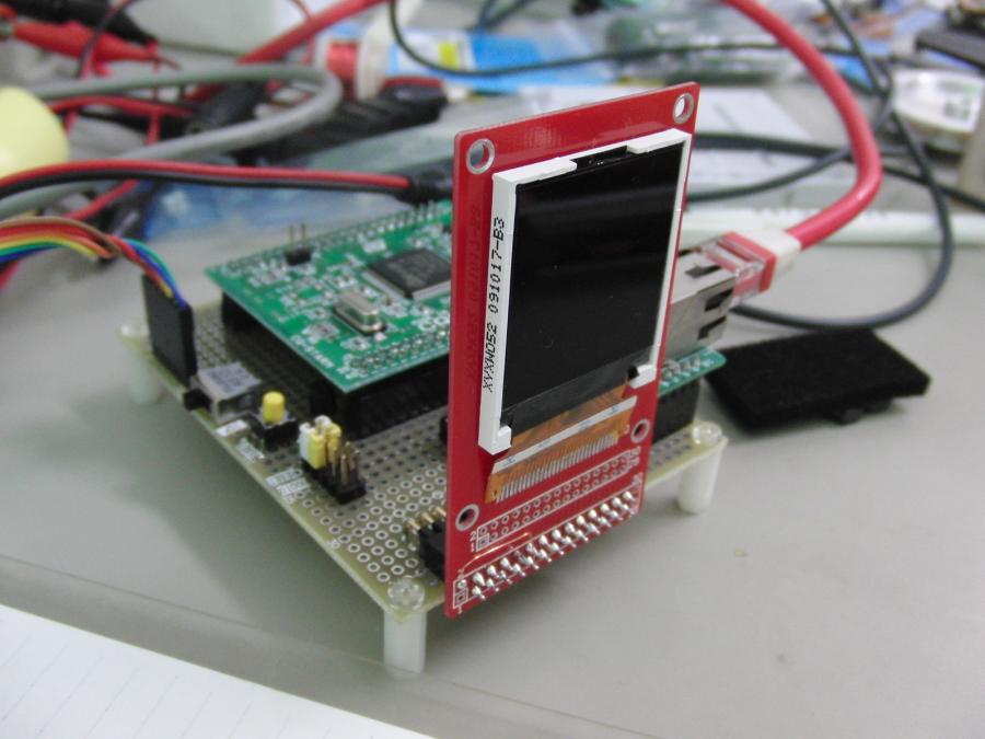カラーLCDをSTM32ボートにstm32ボードにカラーLCDをとりつけた。 8x5dotのフォントでは、字が小さすぎる。 読みづらい。