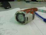 年末の飲み会以来、行方不明になっていた腕時計を 自宅で発見。2ヶ月ぶりぐらいだが、充電状態は良好。 時間は30秒ほどずれていたということは、 あかるいが電波の届かないところにあったということか。 腕時計が無くても、携帯もあるし、ほとんどパソコンの前にいるから 大丈夫だろうと腕時計無の生活を試していたのだが、 ちょっと不便を感じていて、どうしようかと思っていたところだったので、 ちょうどよかった。 写真に撮るまで気がつかなかったが、かなり汚れている。 超音波洗浄機で洗ってみよう。 シャーシ加工(続き)