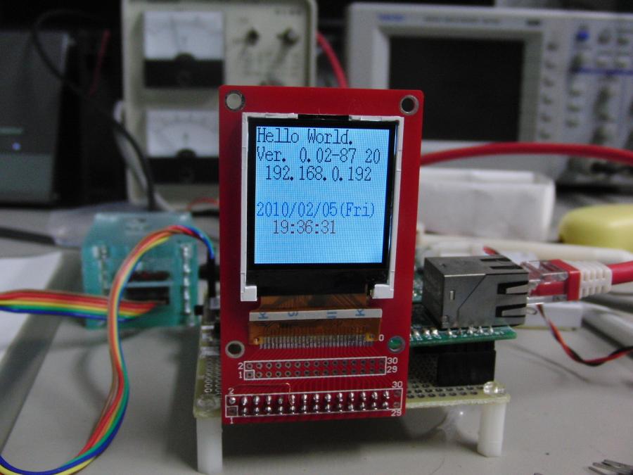 XFree86のソースをダウンロードし、 大量のbdfファイルの中から 16x8dotのフォントを選択、 cのソースに変換し、組み込んでカラーLCDに表示できるようにした。 これぐらいのサイズだと普通に読めてちゃんと使える。 もっと大きなフォントを使いたい気持ちもあるのだが、 そうなると可変幅の問題や圧縮(したい気持ち)の問題もでてくるので、 当面は、これぐらいで我慢しておこう。