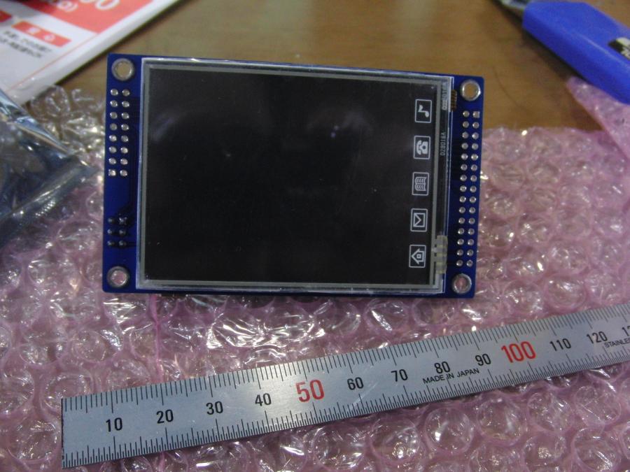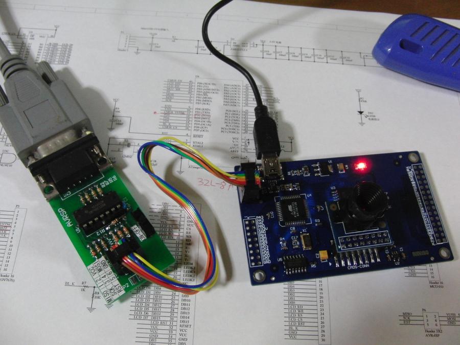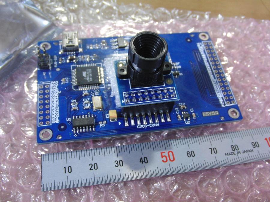 2.8インチのTFT液晶とCMOSカメラ、ATMega32Lがついたボードが