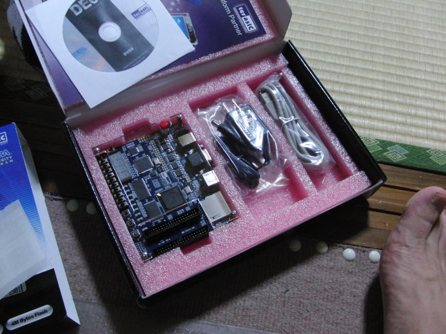 写真は、DE0付属のサンプルをダウンロードし動作させているところ。
